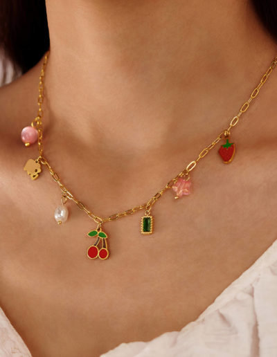 Collier Cerise, plaqué or avec perles