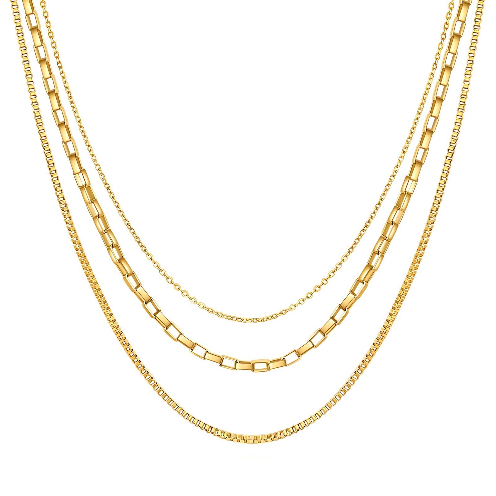 Collier Multi-Rangs « Cascade », acier plaqué or 18K